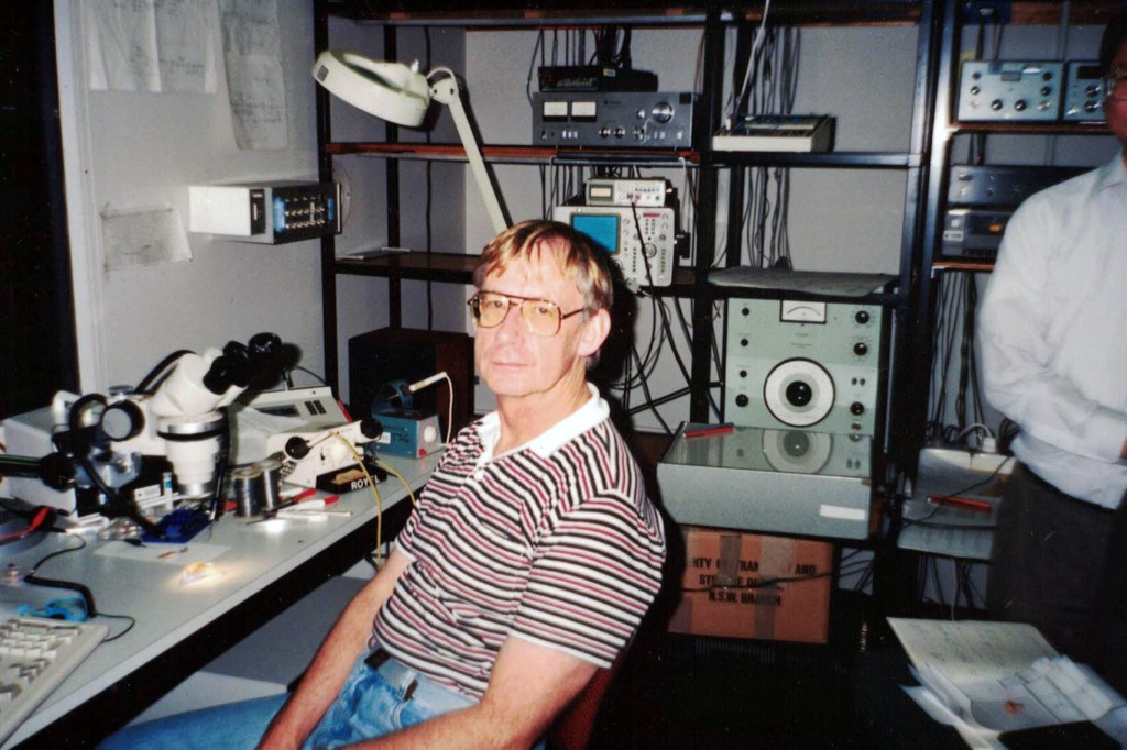 NAL Punter’s Club BBQ. (Nov’79)NAL Punters Club BBQ (Nov ’79)NAL Punters Club BBQ (Nov ’79)NAL Punters Club BBQ (Nov ’79)NAL Christmas Lunch (1983).NAL Christmas Lunch (1983).My Home Away From Home.Fancy Dress ?On the job in the tropics.Port Wakefield (S.A) Sound Propagation Studies.Marshall Smithers and others.Image submitted by John Macrae who says, “It reminds me of the time in NAL when work on the prevention of hearing loss was as important as work on the improvement of hearing aids It also reminds me of Dick Waugh, for whom I had considerable respect. Dick worked entirely on improving the prevention of hearing loss caused by noise exposure. Now, with the retirement of Warwick Williams and Lyndal Carter, the balance has shifted very much to work on hearing aids”. NAL staff seconded to NHAS in 1991. (l to r Wal Phelps, Michael Soliman, Gary Hardy, Teck Loi, Phil McAllister, Barry Clinch, Con Kakatsos). NHAS was a joint partnership with Bernafon to design programmable hearing aids. NAL were the only hearing aid provider in the world to offer such sophisticated technology as standard. In 1995 a high-powered programmable hearing aid was introduced and exported in large numbers by Bernafon.Discussions over lunch at Chatswood.